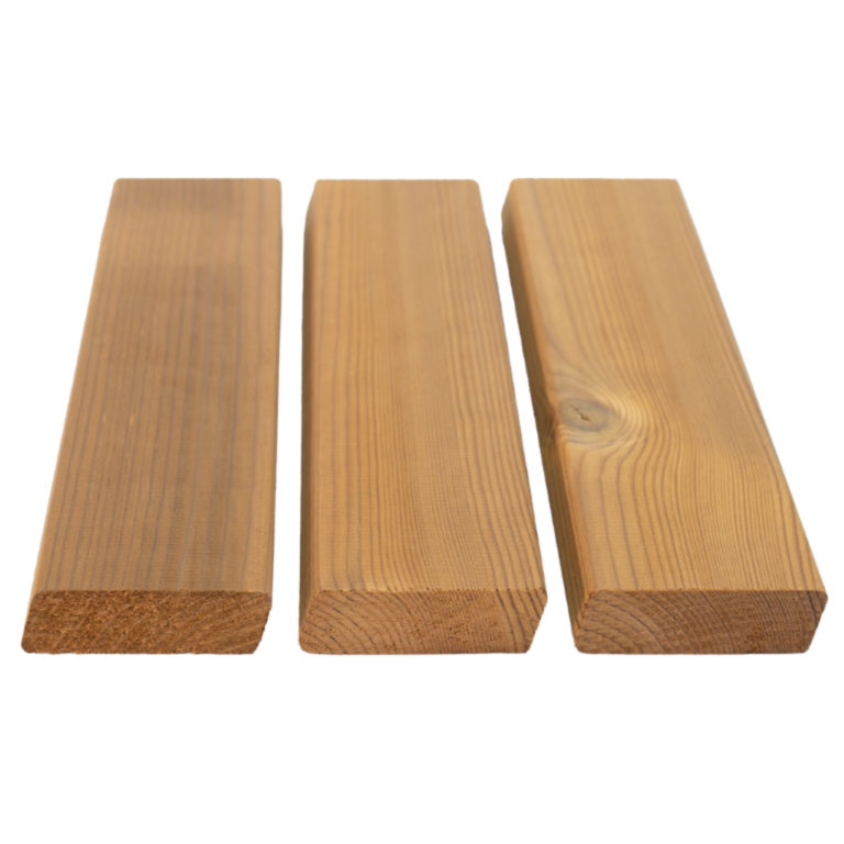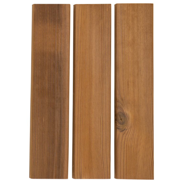 Verbesserte Dauerhaftigkeit: Die thermische Behandlung macht das Holz resistent gegen Pilze, Insekten und Fäulnis. Dadurch wird die Dauerhaftigkeit der Kiefer von der Klasse 4 (wenig dauerhaft) auf die Dauerhaftigkeitsklasse 2 (dauerhaft) angehoben. Dies macht Thermo-Kiefer zu einer nachhaltigen Alternative zu Tropenhölzern.