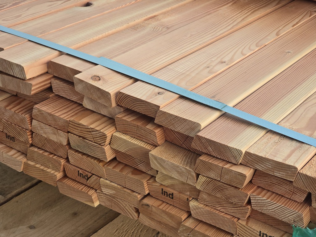 Kanadische Lärche Rhombusleisten Die Leisten sind schön gerade und auch gut gehobelt, jedoch sind hier und da mal einige Astanteile rausgehobelt. Siehe Bilder. A/B Sortierung